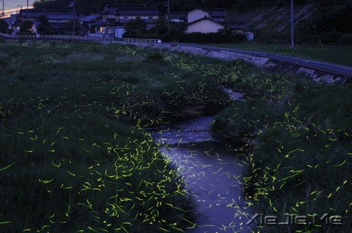 在2008-2011三年的时间里,日本摄影师在日本的真庭和冈山两个地方拍摄了很多萤火虫的照片。六七月的雨后的潮湿空气便是萤火虫们最爱的环境啦,如此多的萤火虫在空中飞舞,即便是见过大场面的摄影师也没法淡定吧。利用长曝光扑捉到了萤火虫的飞行轨迹,星星点点,令人如痴如醉。来源:this is colossal